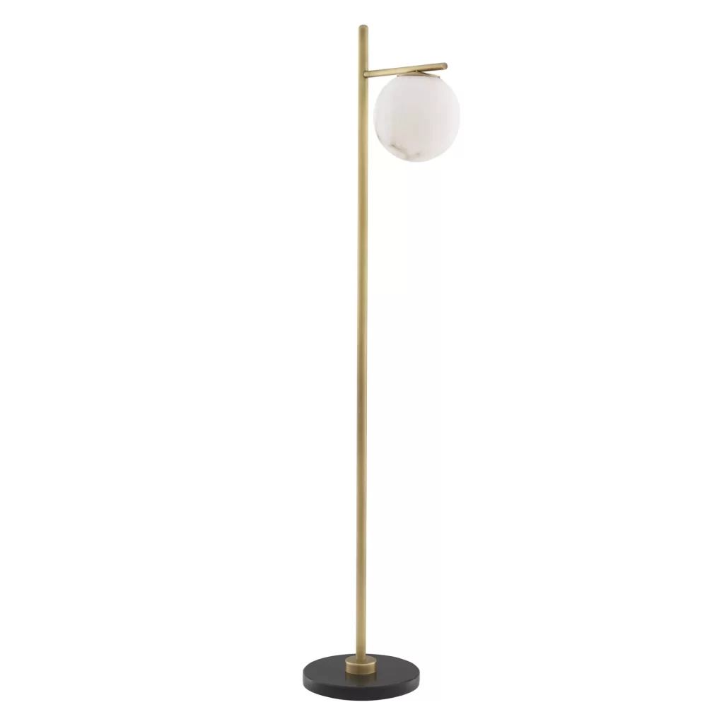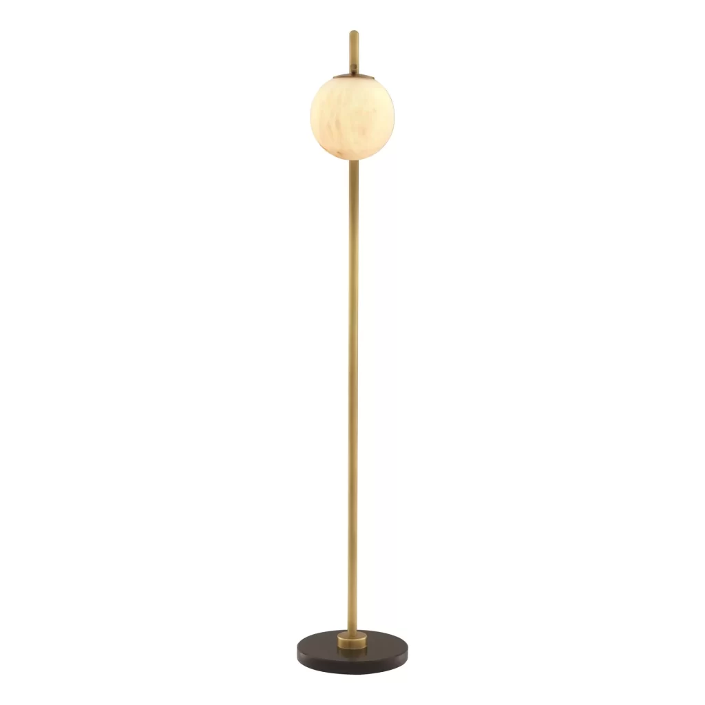 Floor Lamp Faloria takes luxury lighting to a whole new dimension. Unique and sleek in design, it contains three parts: a round black marble base, a pole with antique brass finish and a beautiful alabaster sphere that provides a soft but powerful glow.