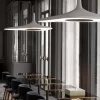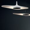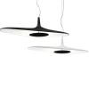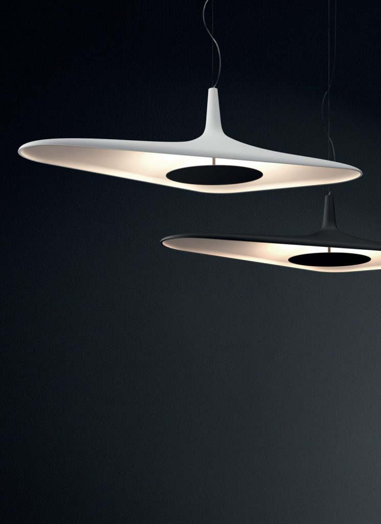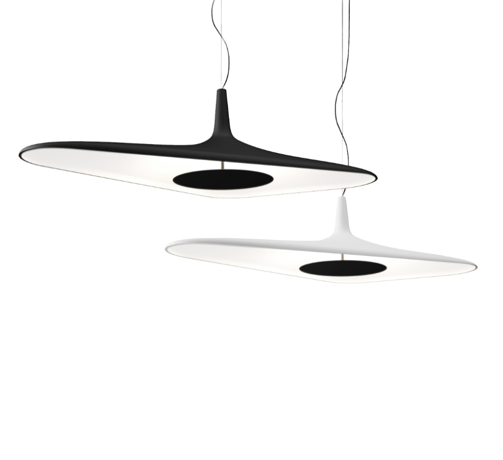 A suspension or ceiling lamp with an organic form in molded expanded polyurethane, whose LED source is hidden inside a disk to generate uniform indirect diffused light.