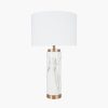 This modern tall ceramic table lamp with marble effect finish is complemented by the gold metal details offering a contemporary look. Topped with a white faux cotton shade this lamp will fit in most decor styles with its beautiful finish.