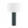 This stunning green marble table lamp with inlaid gold metal detail is perfect for any contemporary home. Complete with a textured cotton cylinder shade in white makes a real statement.