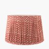 Featuring an in house curated print and reminiscent of the ikat style this tapered geo print is finished in a forest green or red colour and hand mushroom pleated to add a soft edge to the linear design. The 40cm shade is in a tapered profile and helps create a modern/classic look.