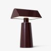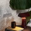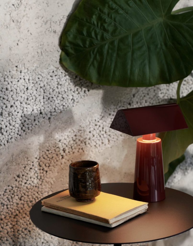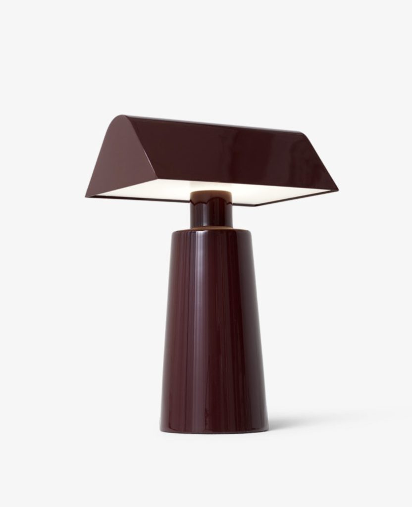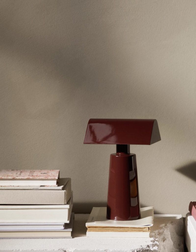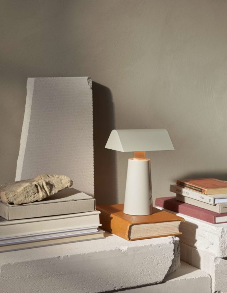 A practical solution to the increasingly blurred boundaries between work and home, the portable Caret reimagines the linear silhouettes of the classic ‘bankers lamps’ – found in historic libraries. Made entirely from lacquered steel, the design features a rounded base and a long, pyramid-shaped top that emits a soft, diffused light
