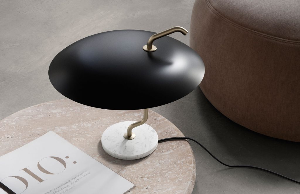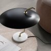 In its refined simplicity, Model 537 stands out owing to the combination of rich materials and ingenious, playful design. The large aluminium reflector in black or white is mounted asymmetrically on a lacquered or brushed brass stem, which is carefully twisted in a beautiful balancing act, coming to rest on an elegant marble base.
