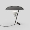 The table lamp designed in 1951 is a study in balance and light reflection through a screen, a recurring theme in Gino Sarfatti’s work. Model 548 provides both reflected and diffused light due to the adjustable spotlight that is directed up towards a reflecting screen.