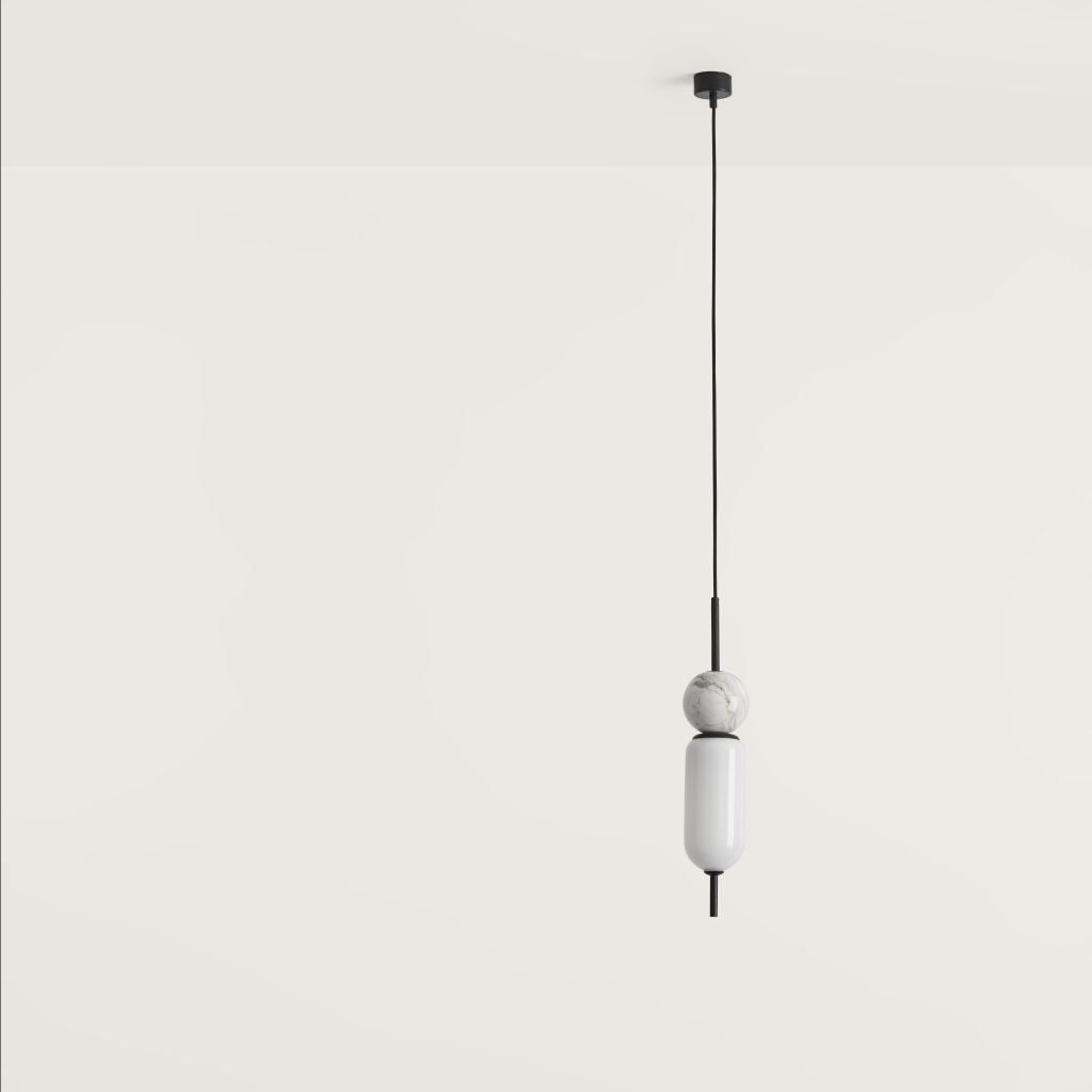 Anet Opal Glass LED pendant in Matt Black/White Marble, Aged Gold/Green Marble or Bronze/Brown Marble.