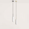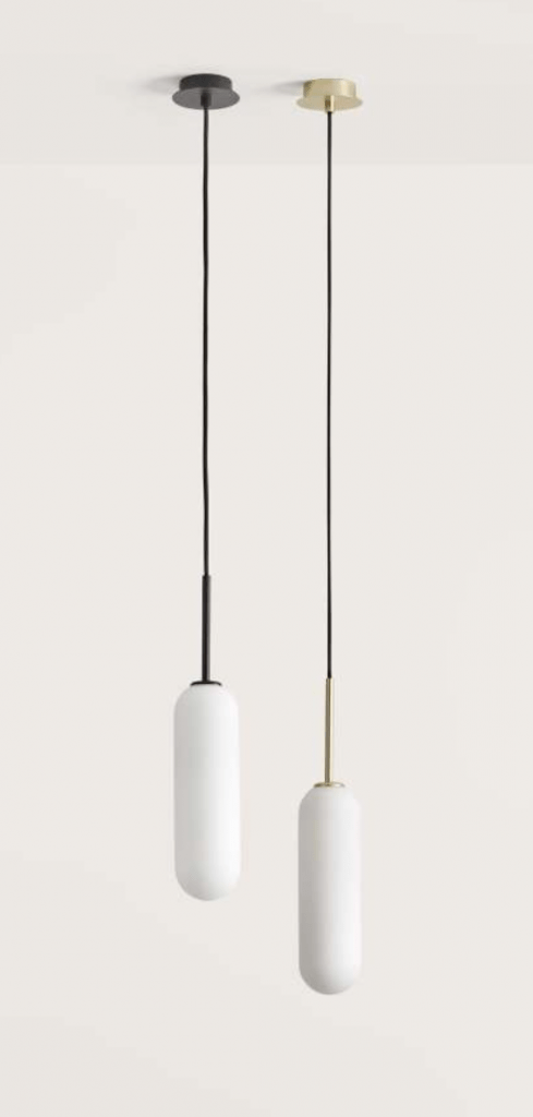 Atil ceiling pendant in Matt Black or Matt Brass with Opal Glass Shade.