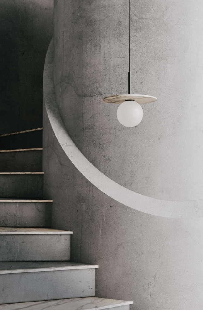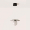 Miron pendant lamp in Matt Black with Opal blown glass shade.