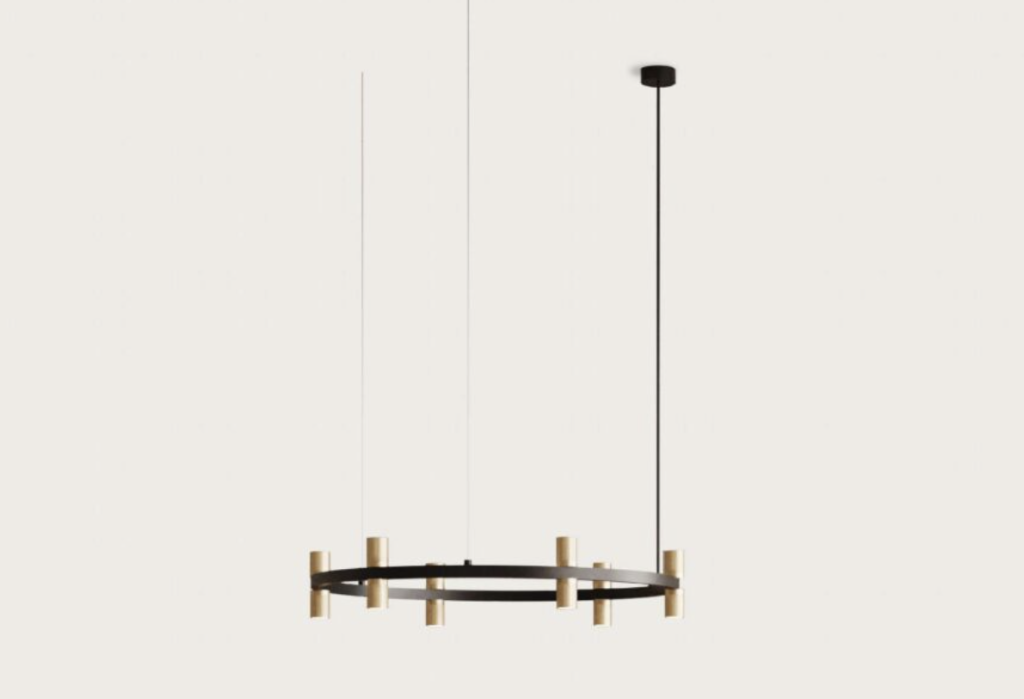 Tura chandelier in Matt Black and Aged Gold.