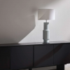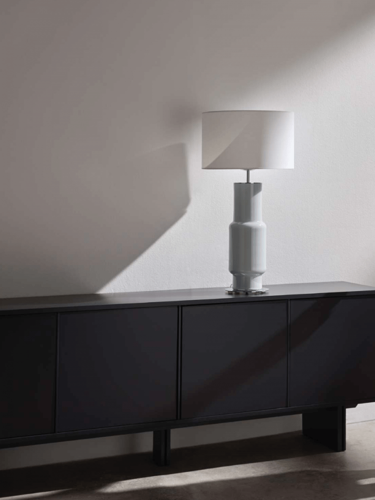 Noa table lamp in Chrome and Mexico Blue Glass. Shade sold separately.
