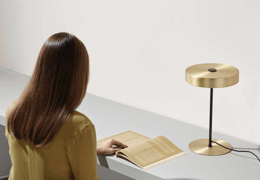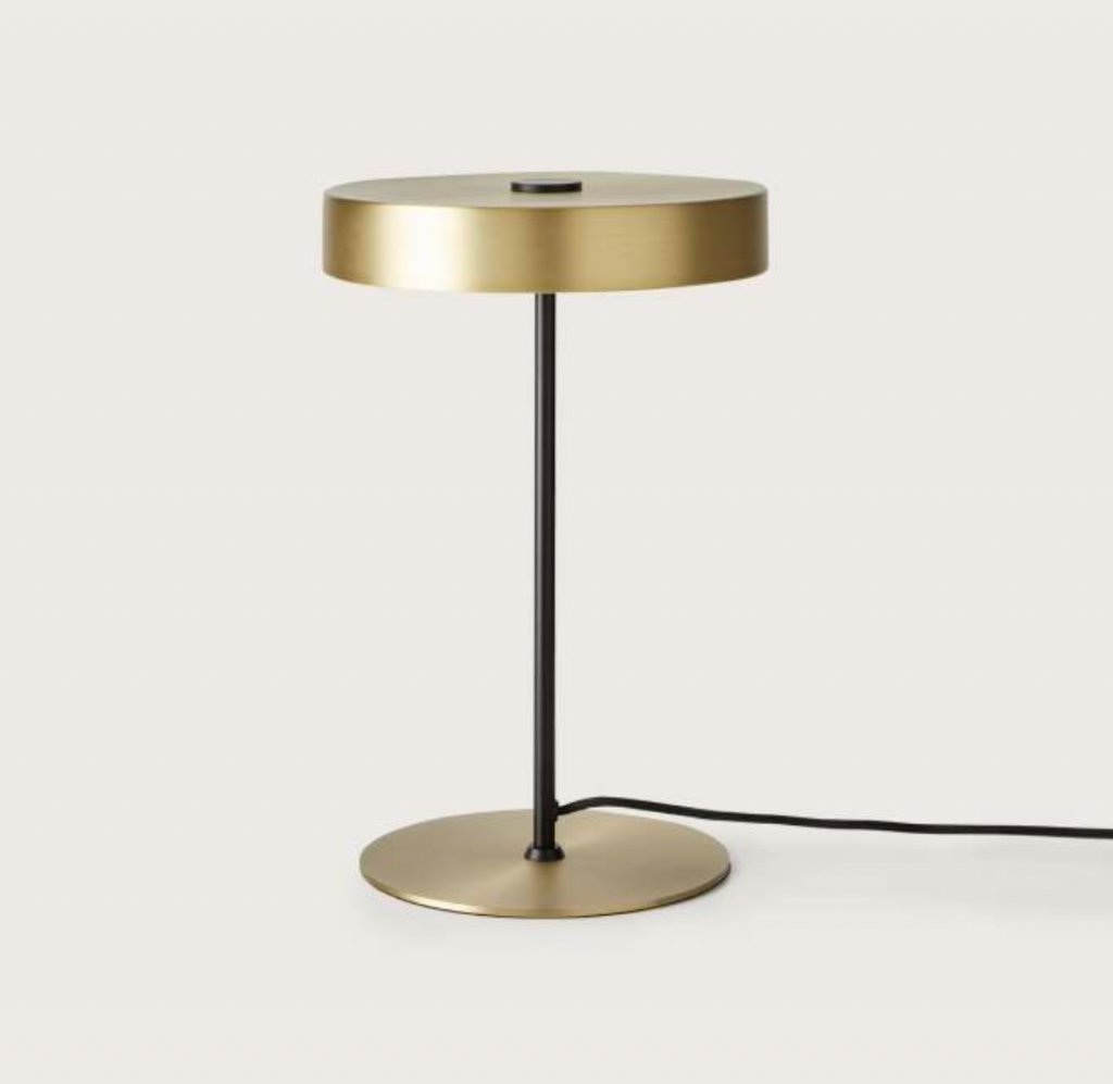 Ambor table lamp in Matt Black and Brass. Dimmer on cable.