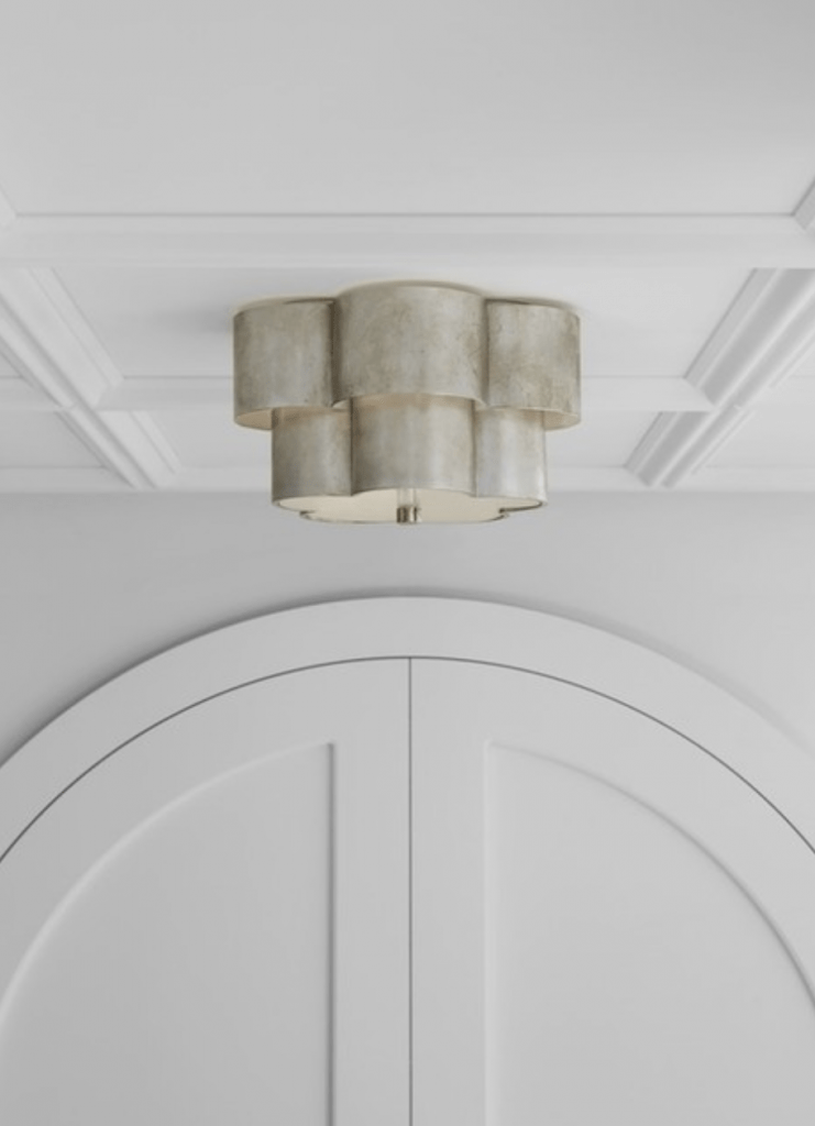 Arabelle Flush Mount in Burnished Silver Leaf or Gild with Frosted Acrylic.