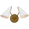 Clemente Double Sconce in hand-rubbed antique brass. Shade finish options available.