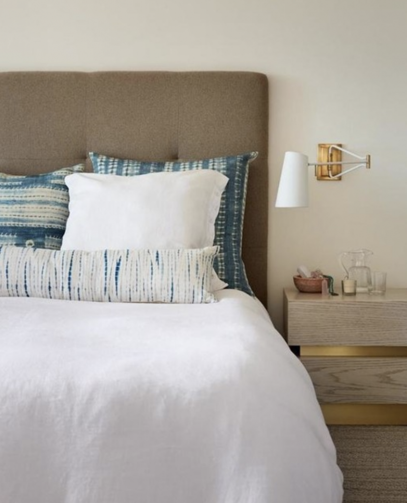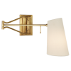 Keil Swing Arm Wall Light in Hand-Rubbed Antique Brass with Linen Shade. Arm finish options available.