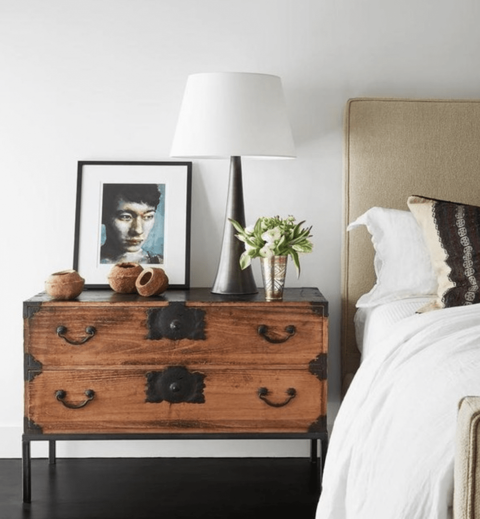 Dover Table Lamp in Aged Iron with Linen Shade.