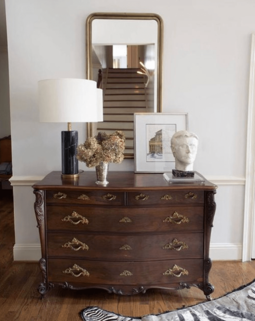 Cliff Table Lamp in Black Marble with Linen Shade.