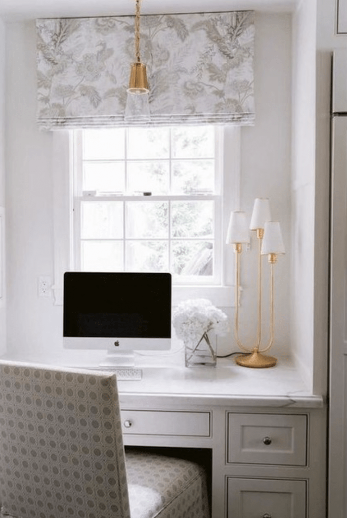 Montreuil Triple Table Lamp in Gild with Linen Shades.