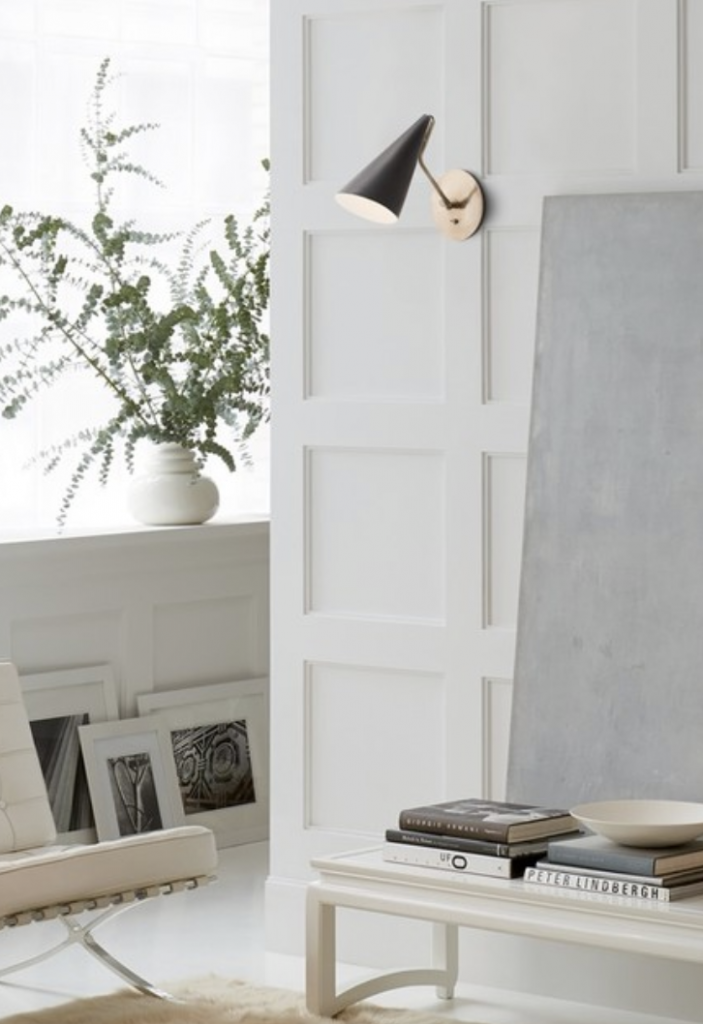 Clemente wall light in hand-rubbed antique brass. Shade finish options available.