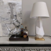 Bayliss Table Lamp in White Leather Ceramic with Linen Shade.