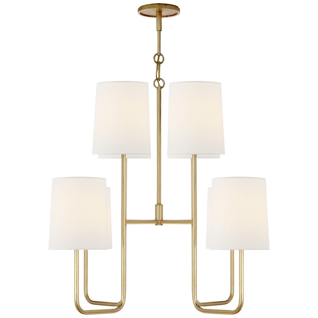 Go Lightly Medium Chandelier in Gild with Linen Shades.