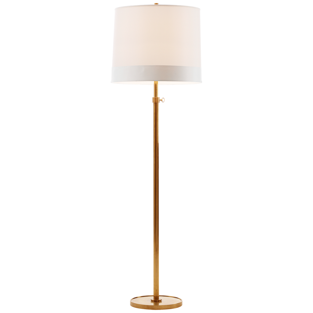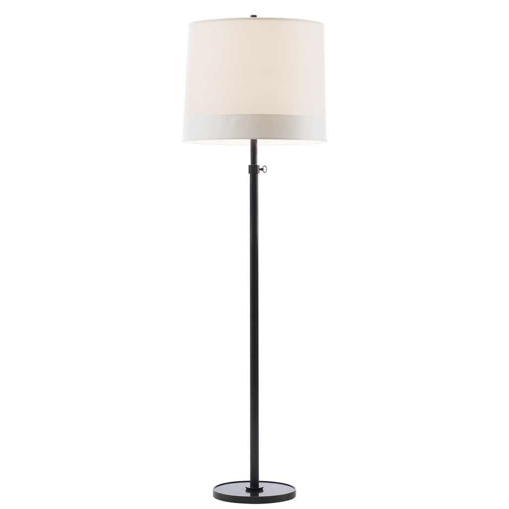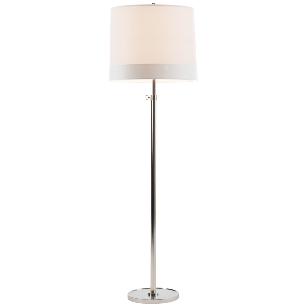 Simple Floor Lamp in Soft Silver, Bronze, and Soft Brass finishes with Silk or Silk Scalloped Shades.