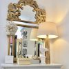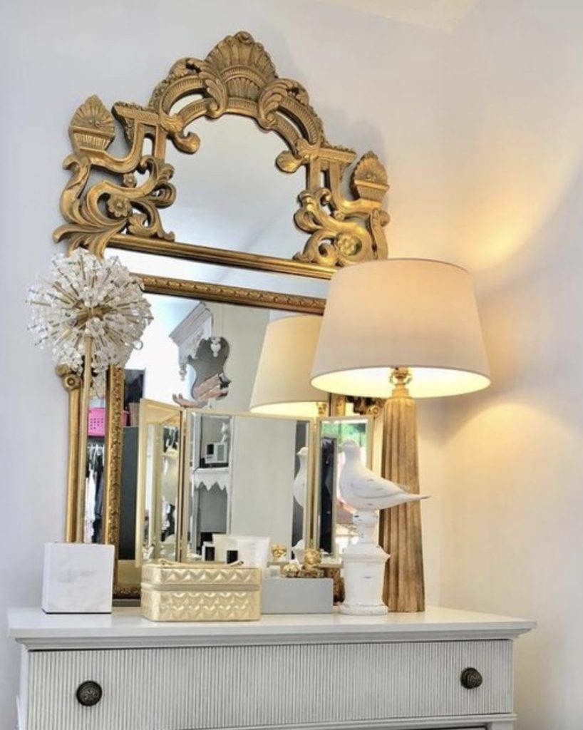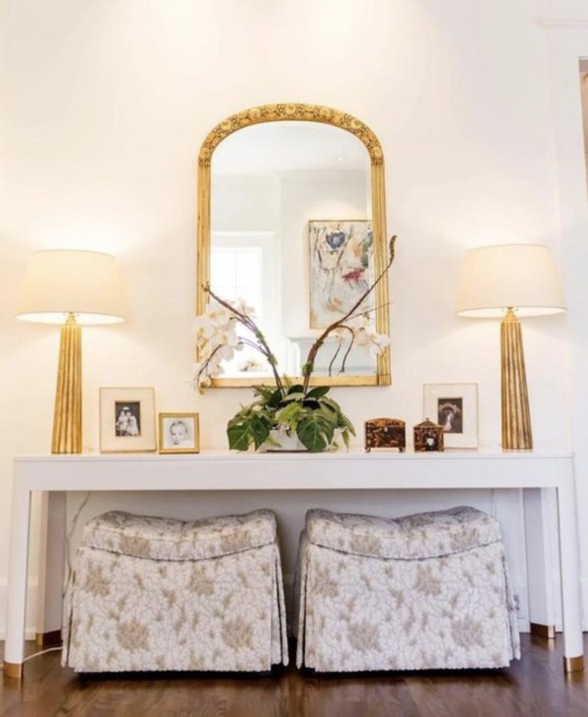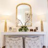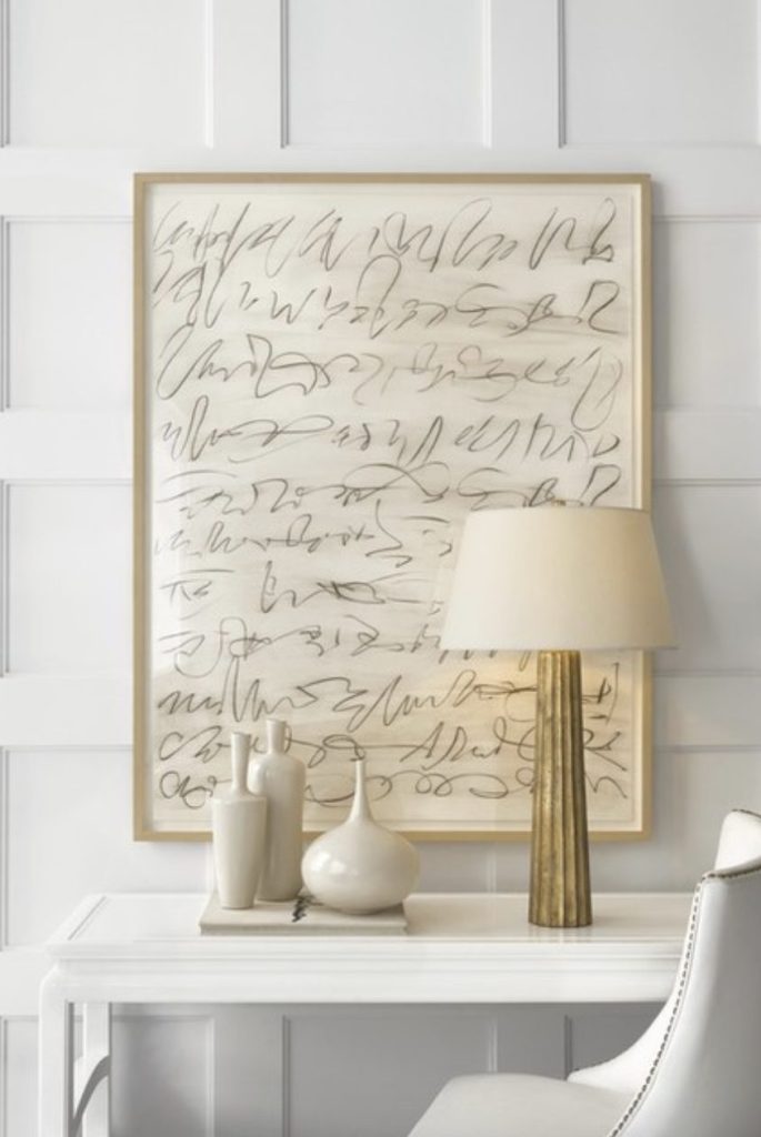 Fluted Spire Large Table Lamp in Gilded Iron with Linen Shade.