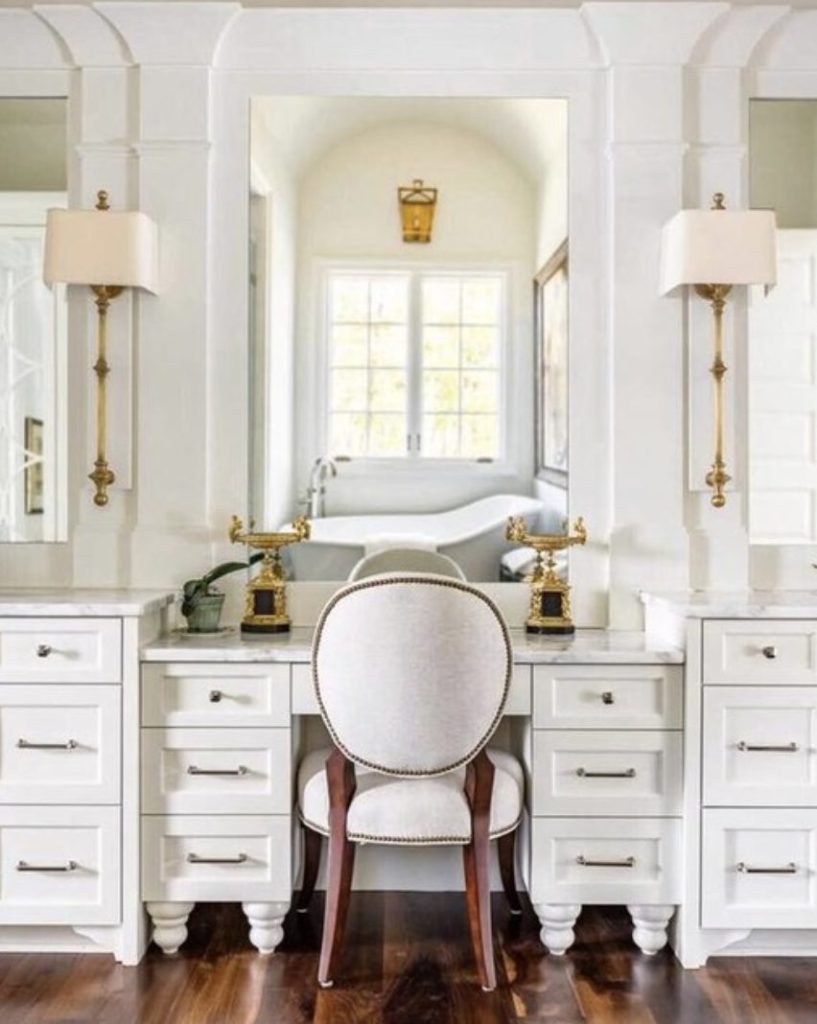 Cawdor Stanchion Wall Light in Antique Burnished Brass with Linen Shade.