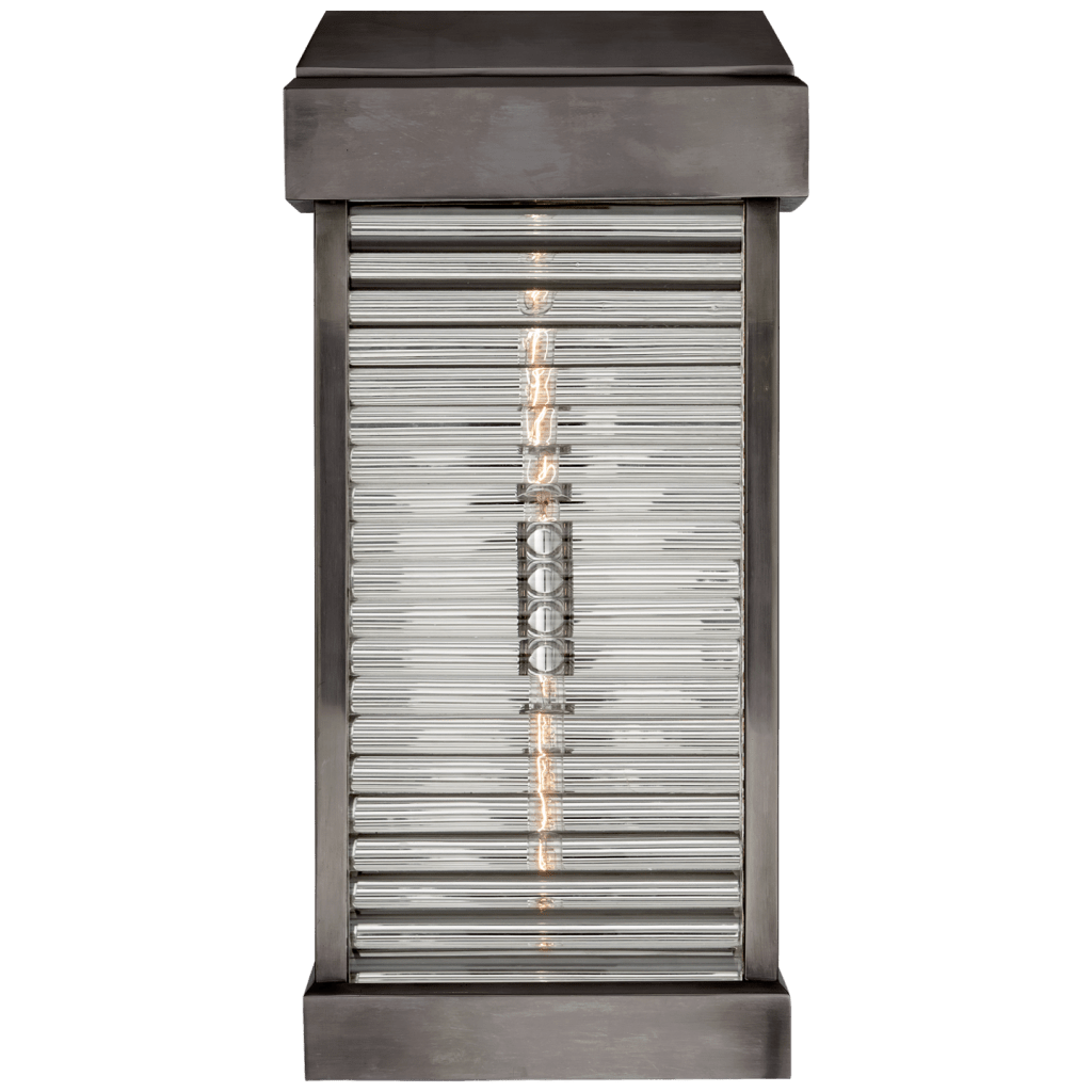 Dunmore Large Curved Glass Louver Sconce in Bronze with Clear Ribbed Glass.