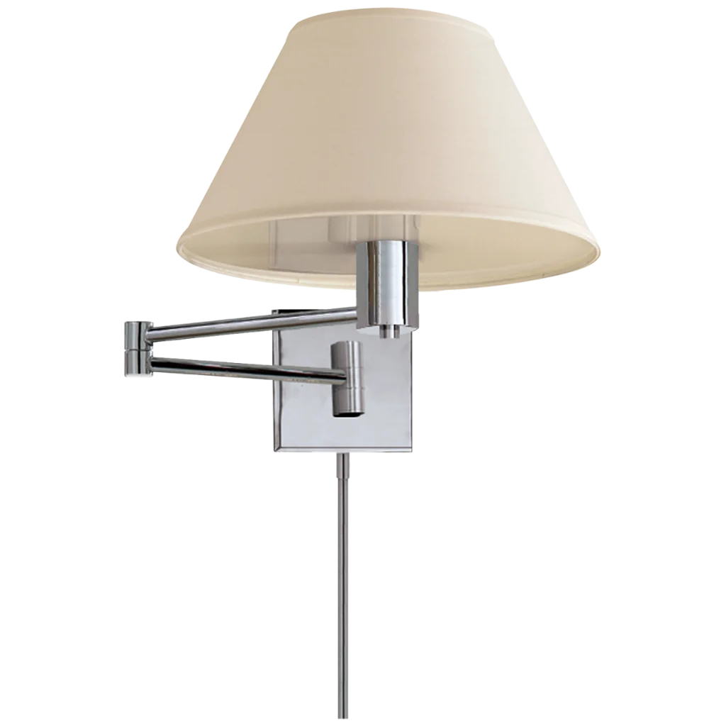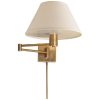 Classic Swing Arm Wall Lamp in Hand-Rubbed Antique Brass or Polished Nickel with Linen Shade.