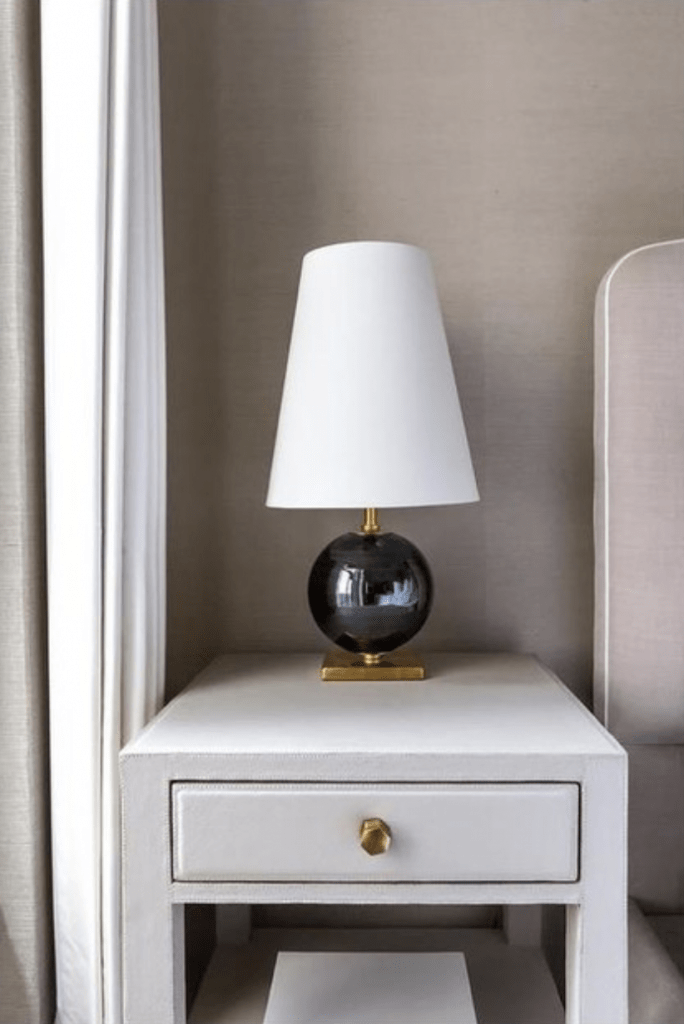 Corbin Mini Accent Lamp with Cream Linen Shade. Choose finish.