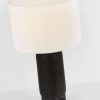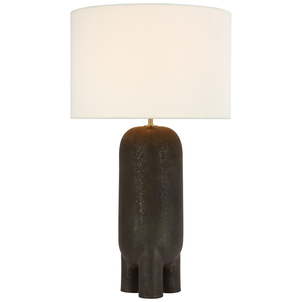 Chalon Large Table Lamp in Stained Black Metallic with Linen Shade.