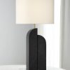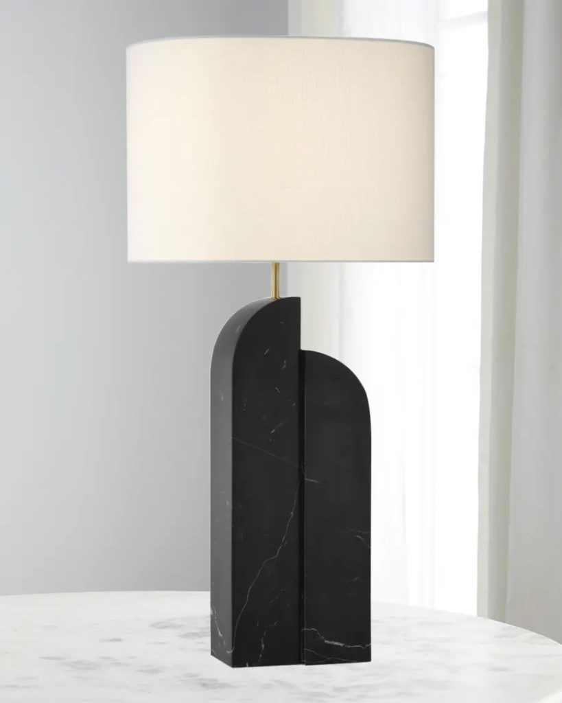 Savoye Large Right Table Lamp in Black Marble with Linen Shade.