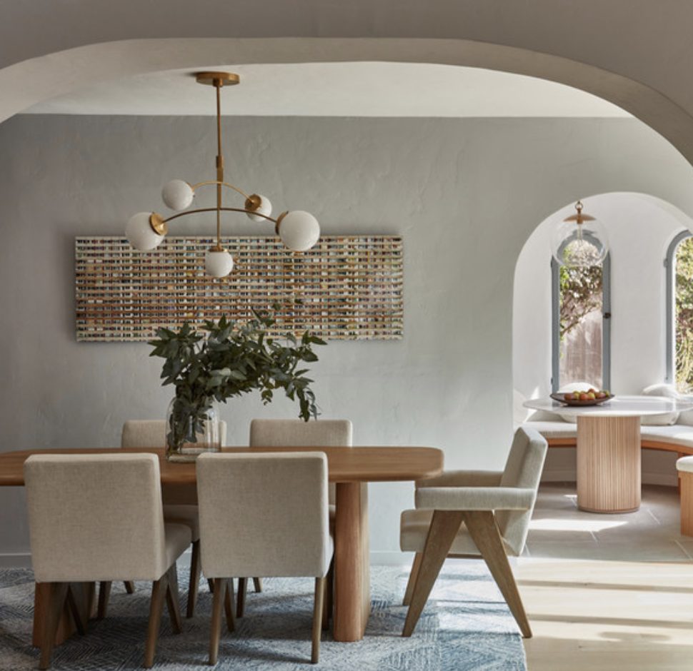 Prescott Medium Mobile Chandelier in Soft Brass with White Glass.