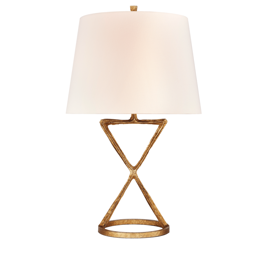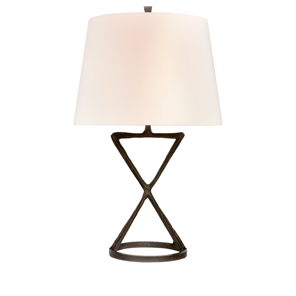 Anneu Table Lamp in Aged Iron or Gilded Iron with Linen Shade.