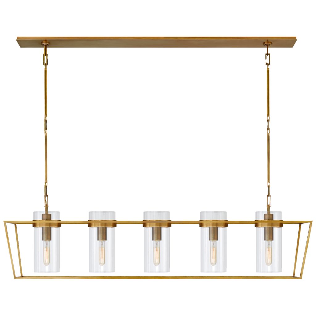 Presidio Large Linear Lantern in Hand-Rubbed Antique Brass or Polished Nickel with Clear Glass.