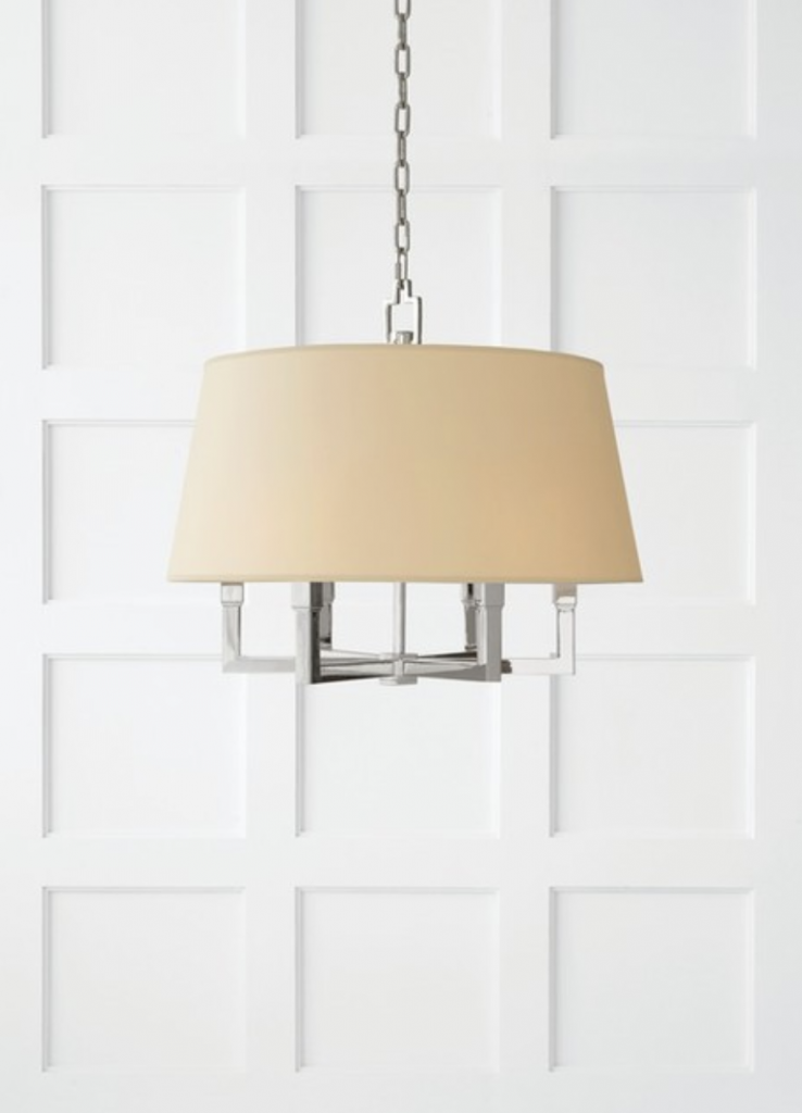 Square Tube Hanging Shade with Linen Shade. Choose finish.