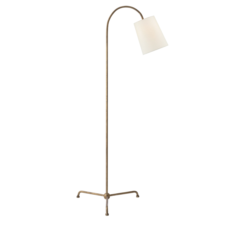 Mia Floor Lamp in Aged Iron or Gilded with Linen Shade.