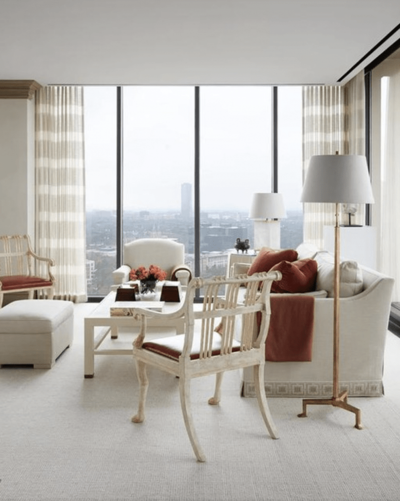 Parish Floor Lamp in Gilded Iron with Natural Paper Shade.