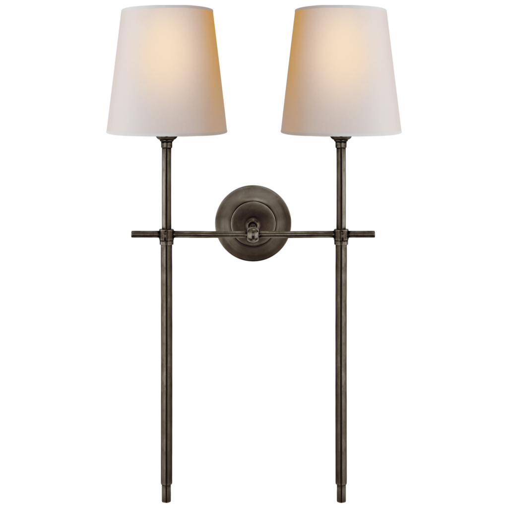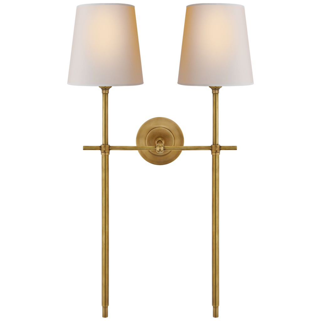 Bryant Large Double Tail Sconce with Linen Shades. Choose finish.