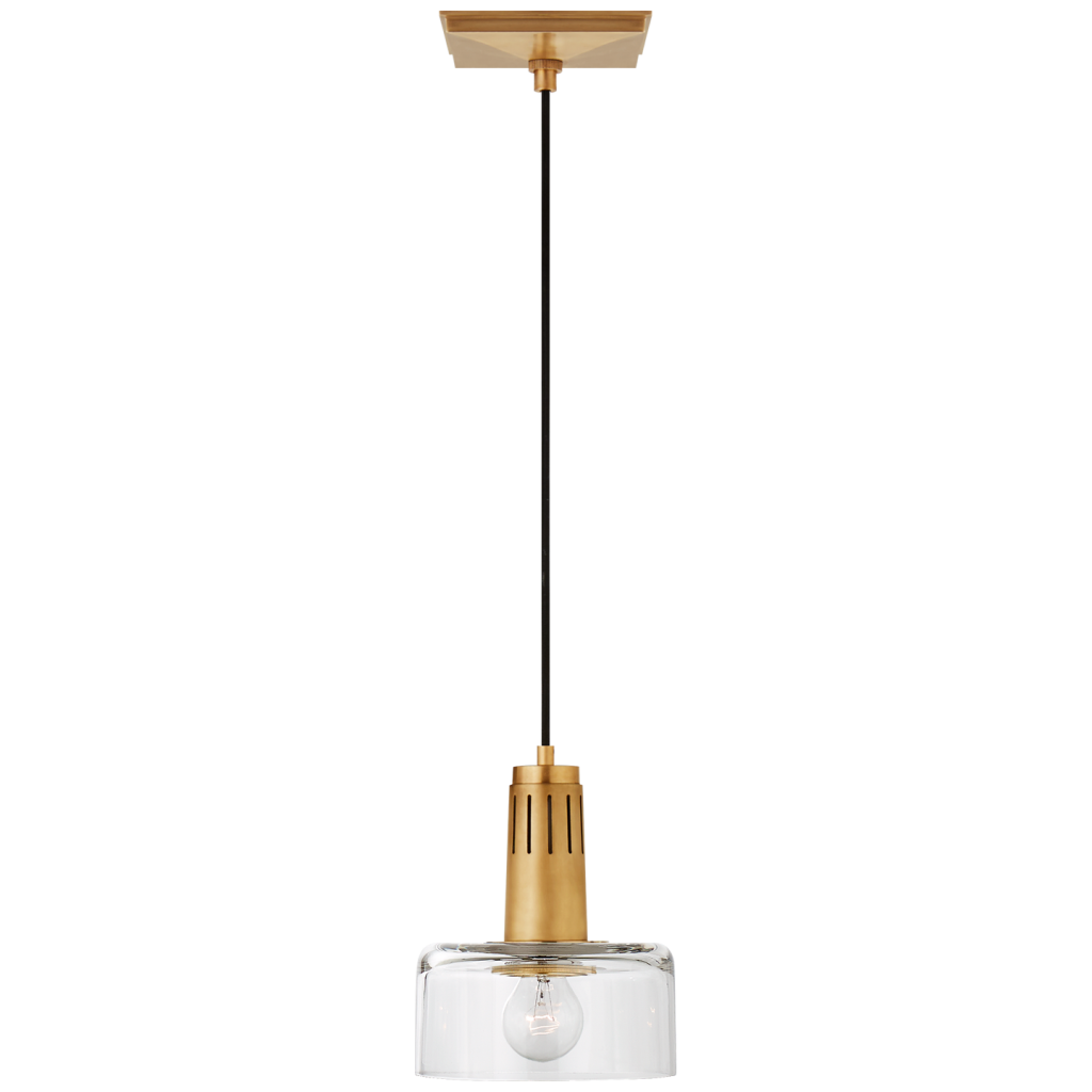 Iris Single Pendant in Hand-Rubbed Antique Brass with Clear Glass.
