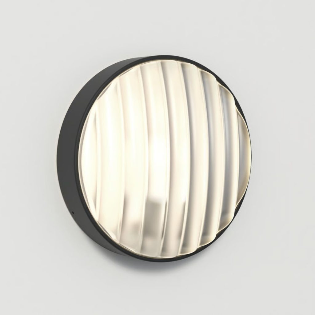 A modern interpretation of a classic bulkhead light, the Montreal outdoor wall light has a bold, industrial look, that’s softened by its gently curved shape. Ideal for lighting pathways and steps, its pressed, wide-ribbed glass is complemented by a simple surround in textured black. Montreal is IP44 rated for use in exterior locations.