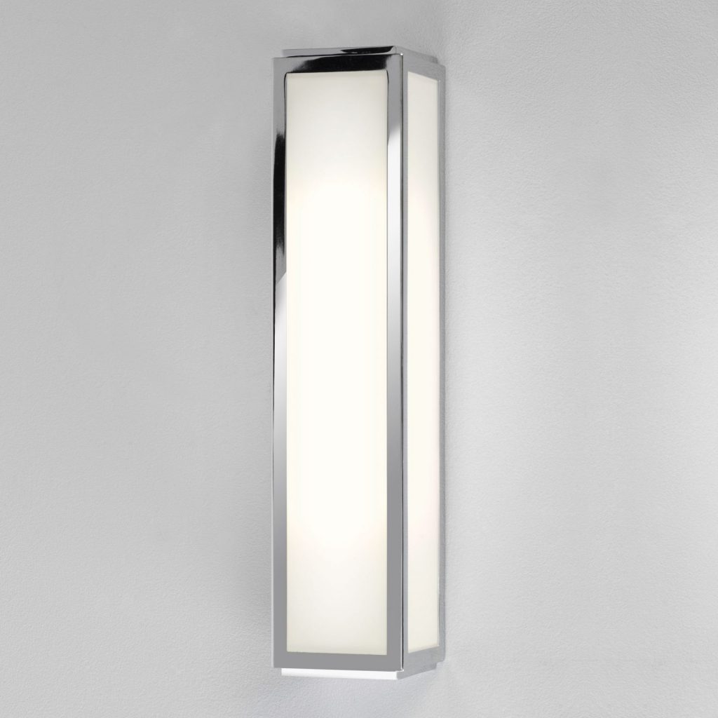 Mashiko 360 Classic bathroom wall-light. Polished chrome, matt gold or bronze finish, white glass diffuser. Uses 2 x 40w (max) E14 lamps. IP44 rated, suitable for bathroom zones 2 and 3. Class I, earthed.