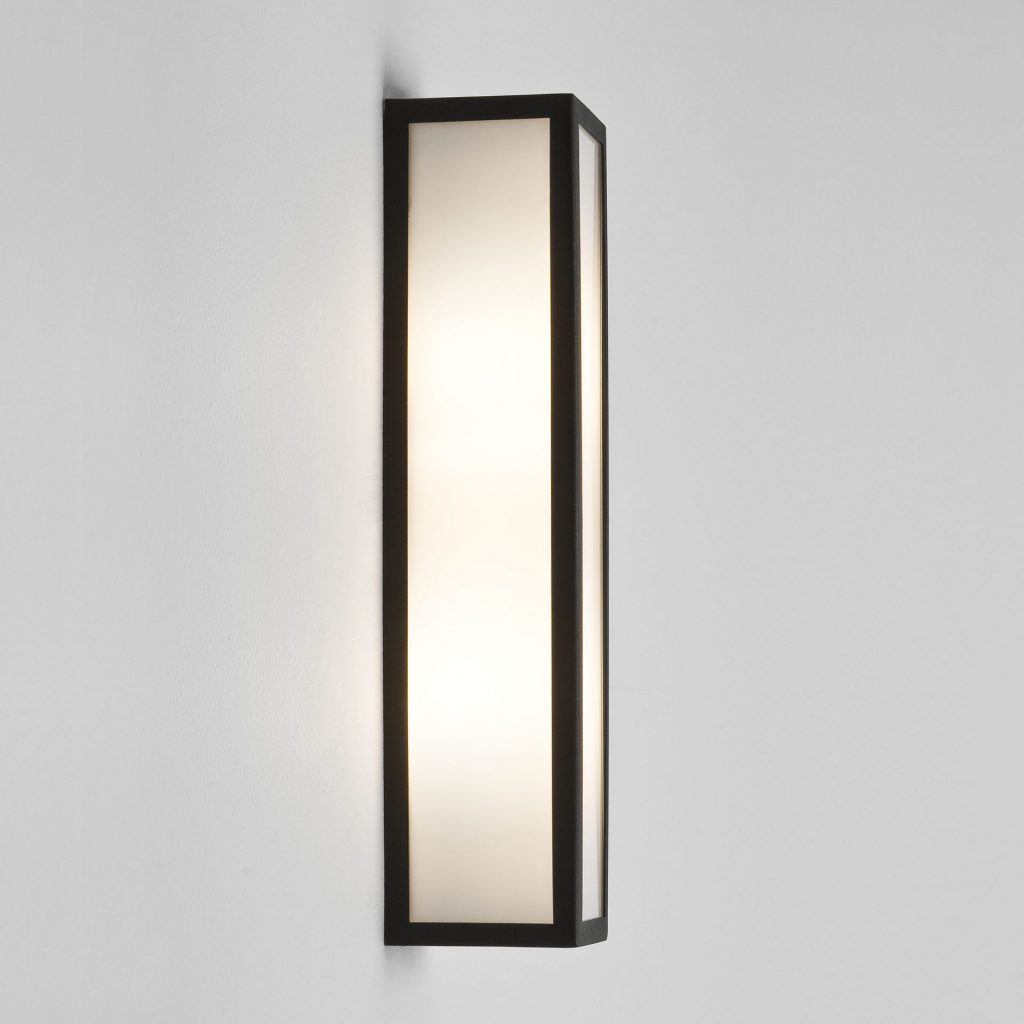 With a bold textured black finish that offers exterior grade protection, the Salerno wall light emits softly diffused, ambient illumination.