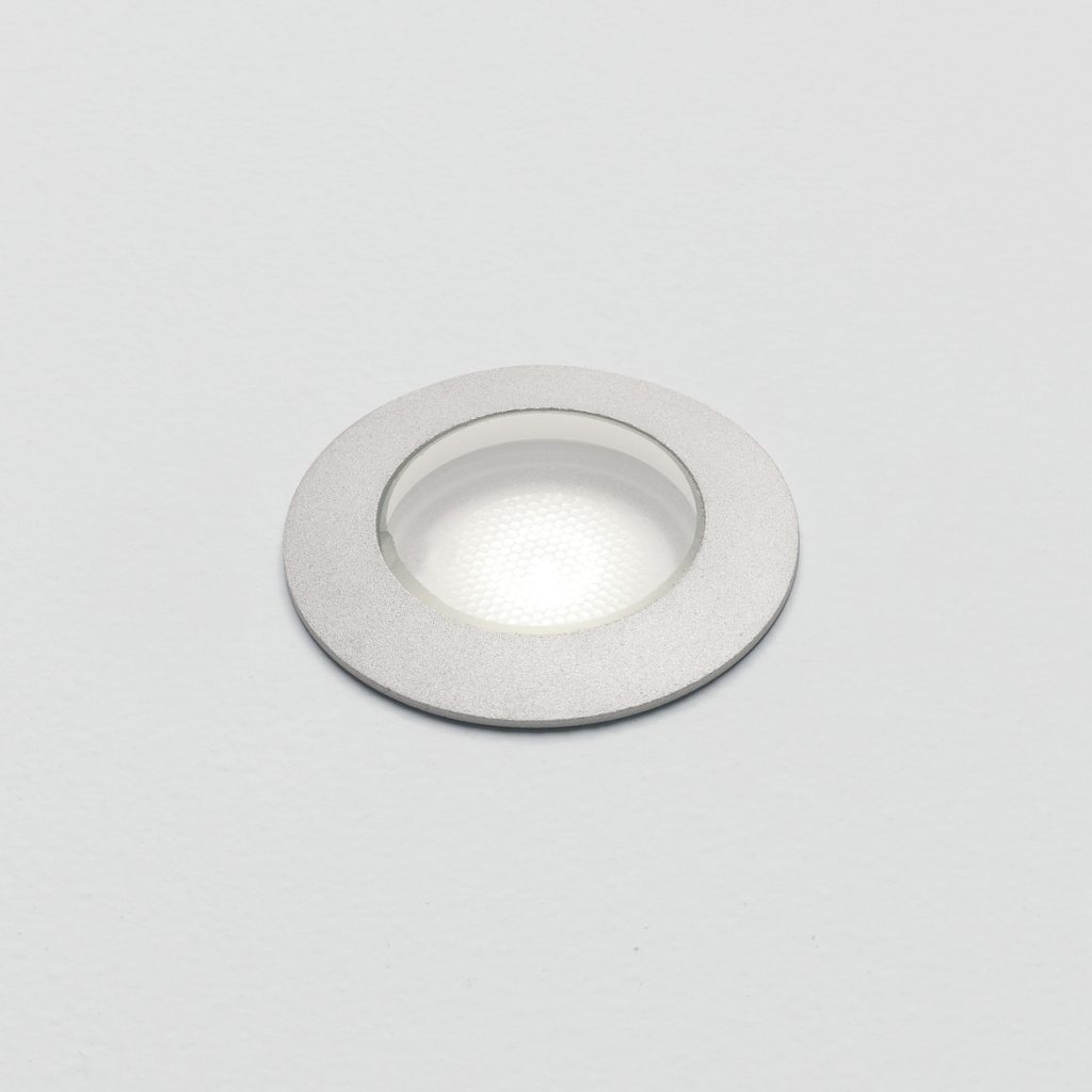 Terra exterior ground-light. Anodised Aluminium finish, toughened glass. Uses a 3w LED. IP67 rated. Class III. Requires a 700mA constant current driver, not included. This product can be dimmed if a dimmable driver is used.