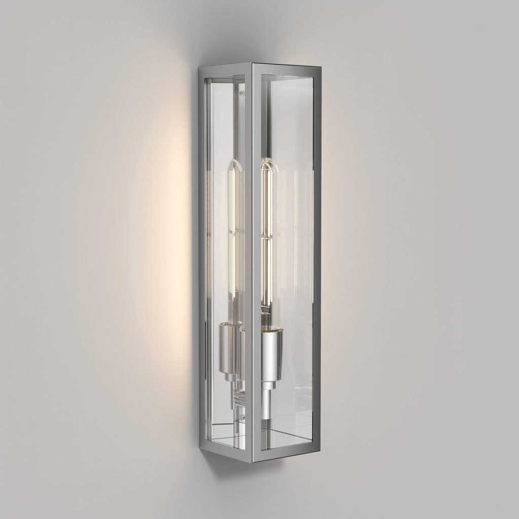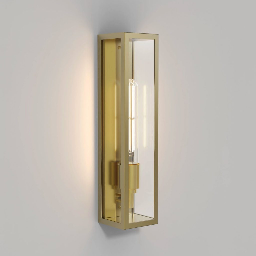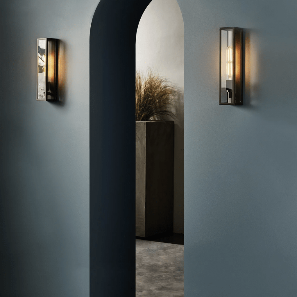 Harvard Exterior Wall Light in Bronze, Matt Black, Natural Brass or Polished Stainless Steel.