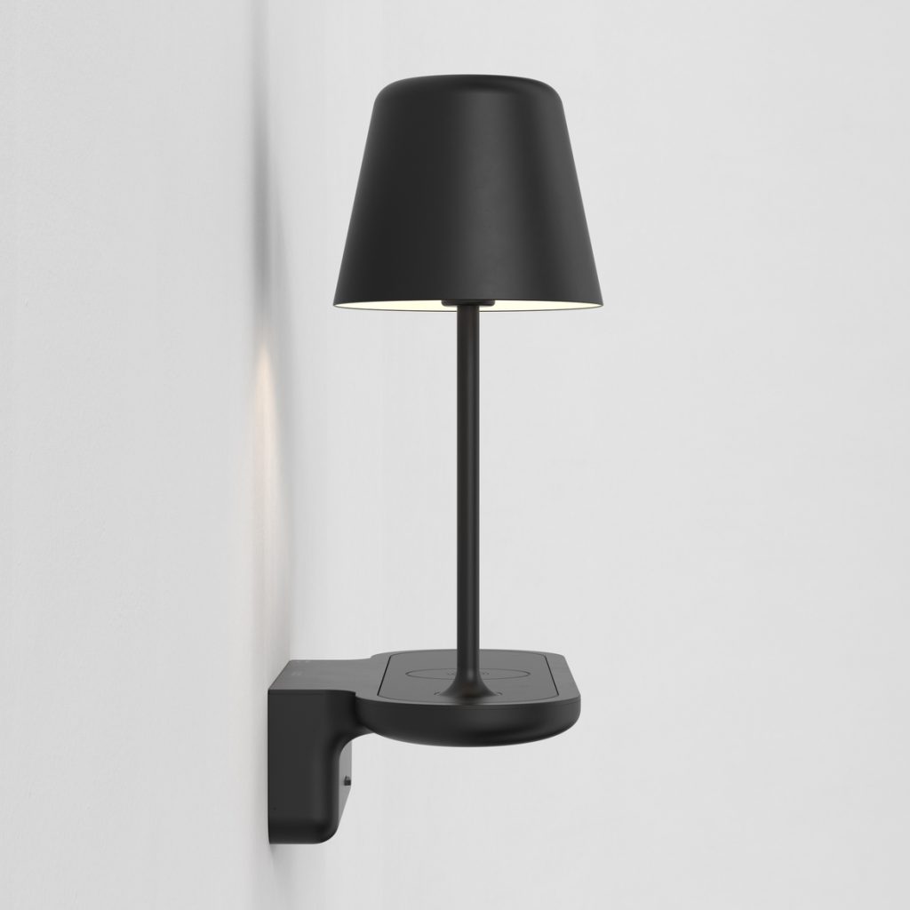 An ideal light for compact spaces, the Ito is a hybrid of a classic wall-mounted bedside lamp and an integrated wireless and USB docking station. Made from silicone and die-cast aluminium in a matt-white or matt-black finish, it has a modern, organic look and is designed to charge your device even when the light source is switched off. Created with flexibility in mind, Ito’s shade can be positioned on the left or right during installation.