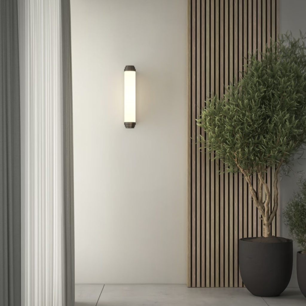 The Burlington 400 is an elegant Art Deco inspired wall light, ideal for placement above or beside bathroom mirrors or in corridors. Mountable vertically or horizontally with options for dimming to suit both residential and commercial settings, the Burlington’s cylindrical design creates a sophisticated ambiance.