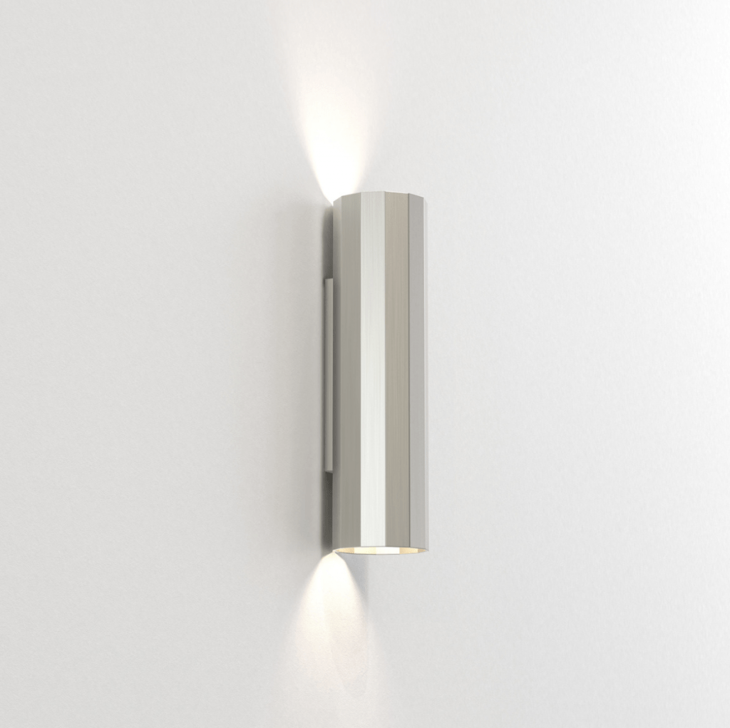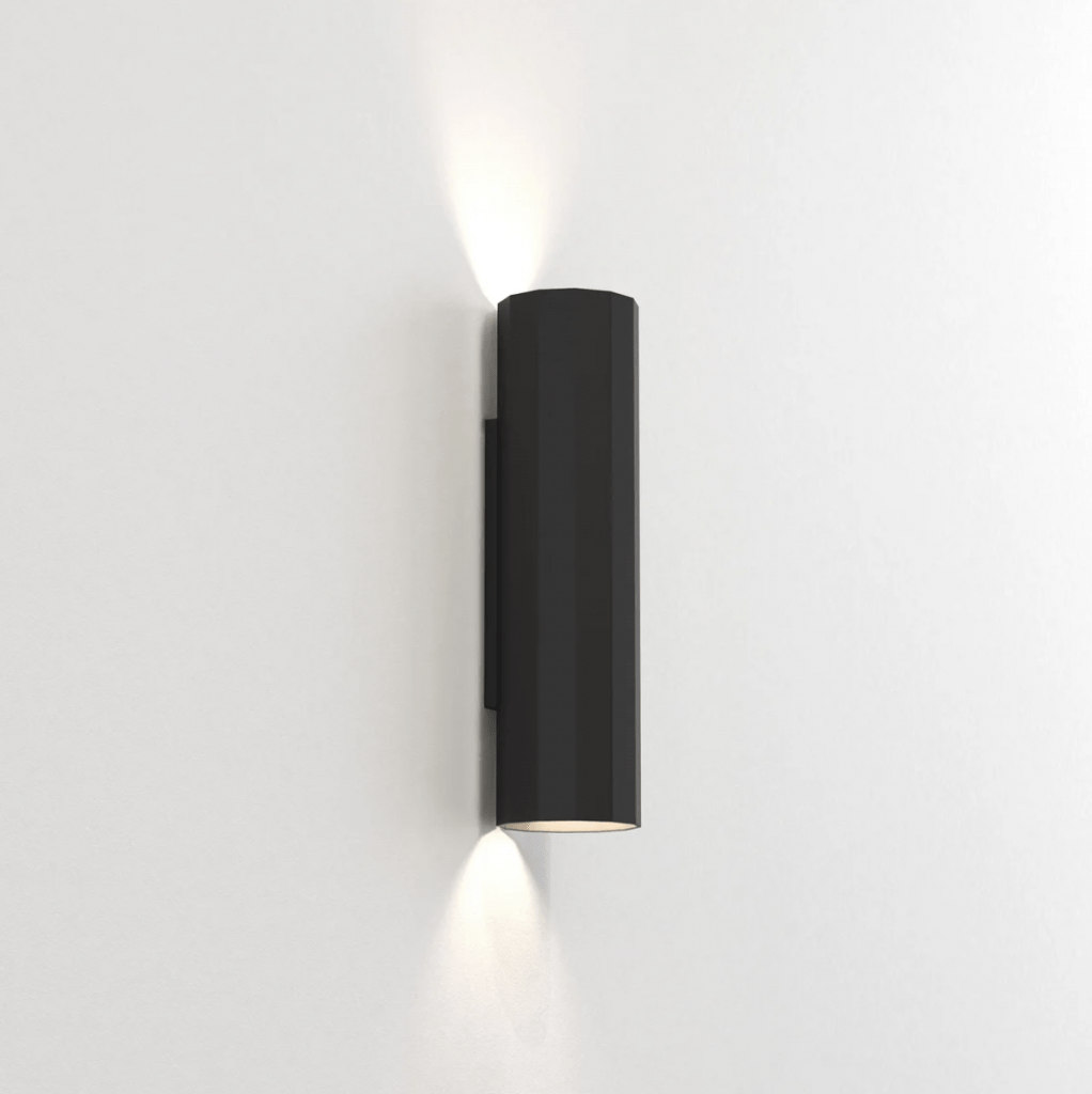 The Hashira 300 wall light is a contemporary faceted form inspired by neoclassical architecture. It washes defined pools of light upwards and downwards, casting complex shadows that echo its shape. It comes in matt black, matt nickel or matt gold finishes and has no visible fixings for a seamless look. A push-fit terminal block allows for easy loop in/out wiring and tool-free connection, and all terminations are made within the backplate.