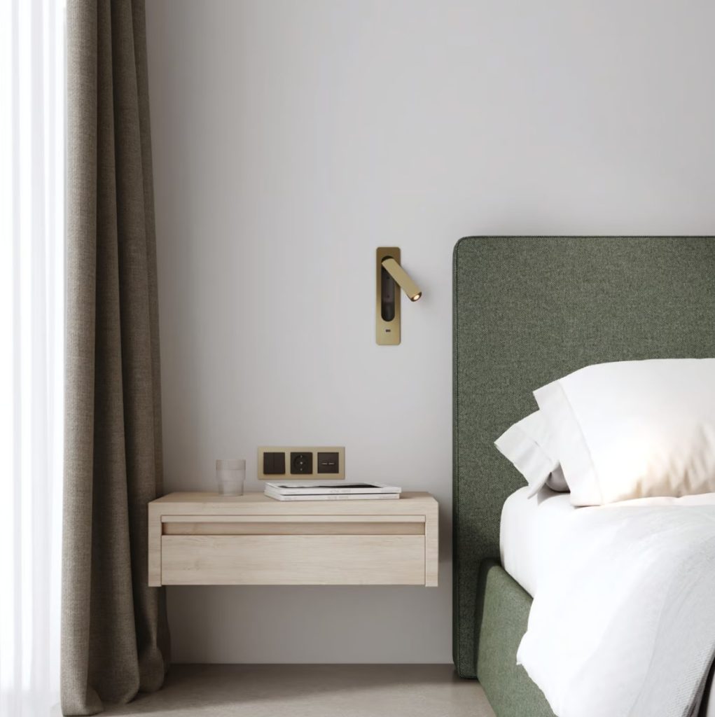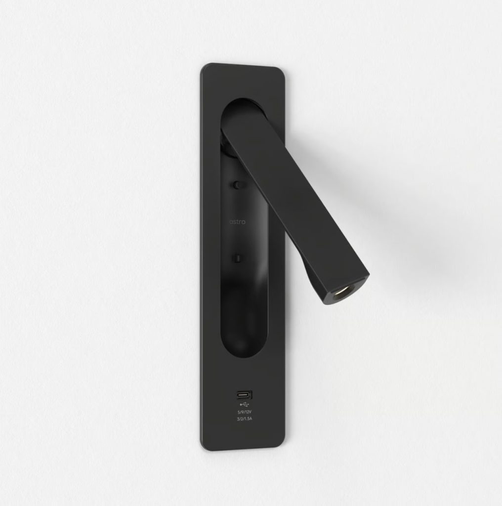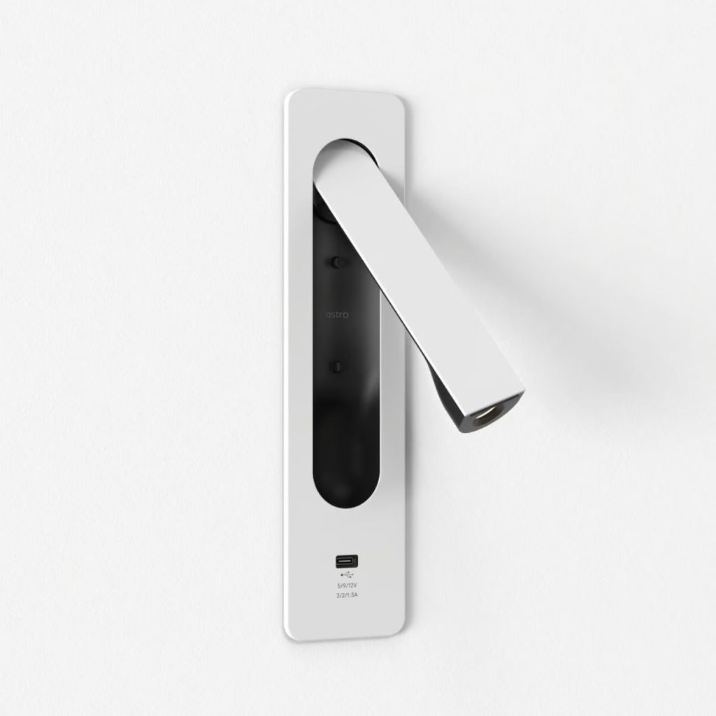 The Keta flush-fitting reading light is a marvel of engineering. Intended to be wall-mounted vertically or horizontally, it has a recessed light source for reduced glare and an automatic on-off switch with docking motion. Refined details include engineered stops to prevent abrasion, and perfect alignment between the head and cradle.