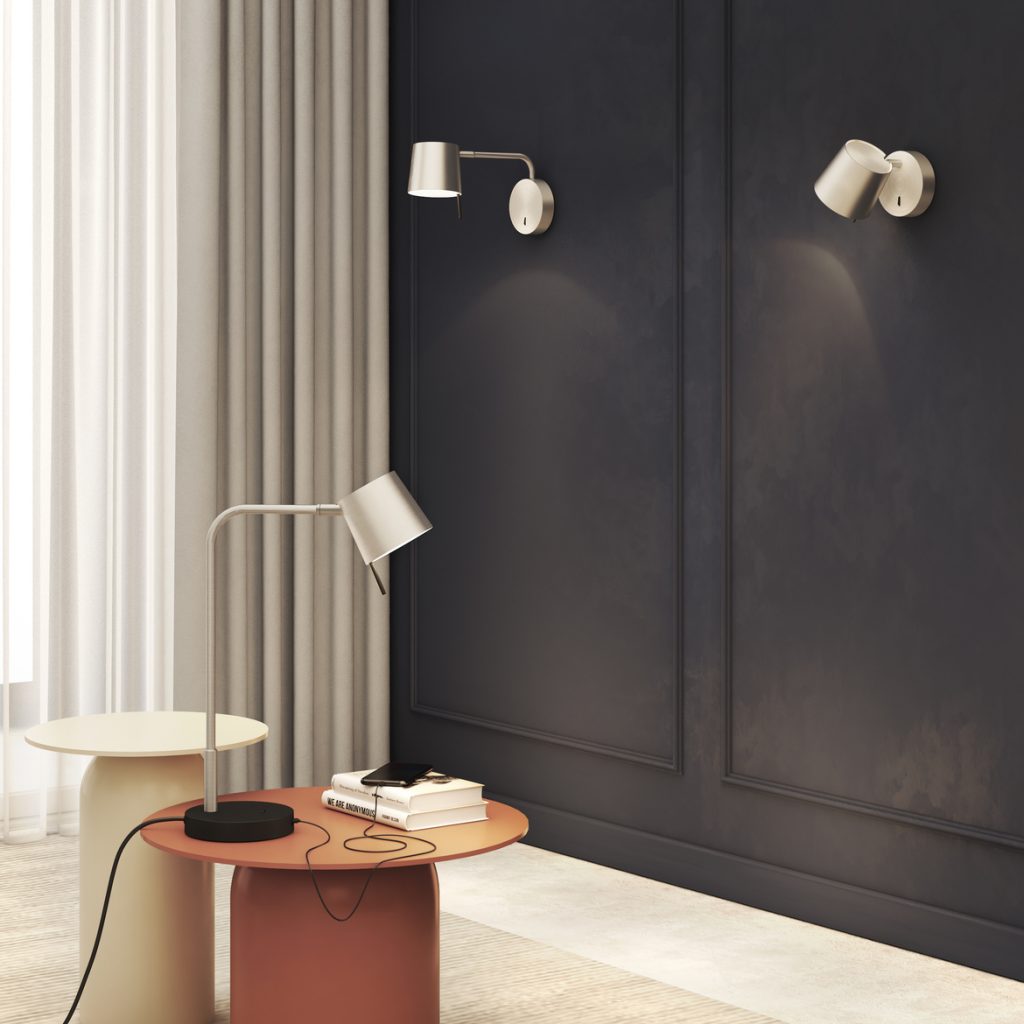 The Miura Swing Arm is a timeless, supremely functional LED reading light for bedrooms and studies that adds elegance to a room, while allowing its user complete control. It features a custom-moulded diffuser for reduced glare and a hard wearing knuckle joint for easy adjustment. The neatly proportioned shade, arm and base can be mixed and matched in matt black, matt nickel or matt gold.