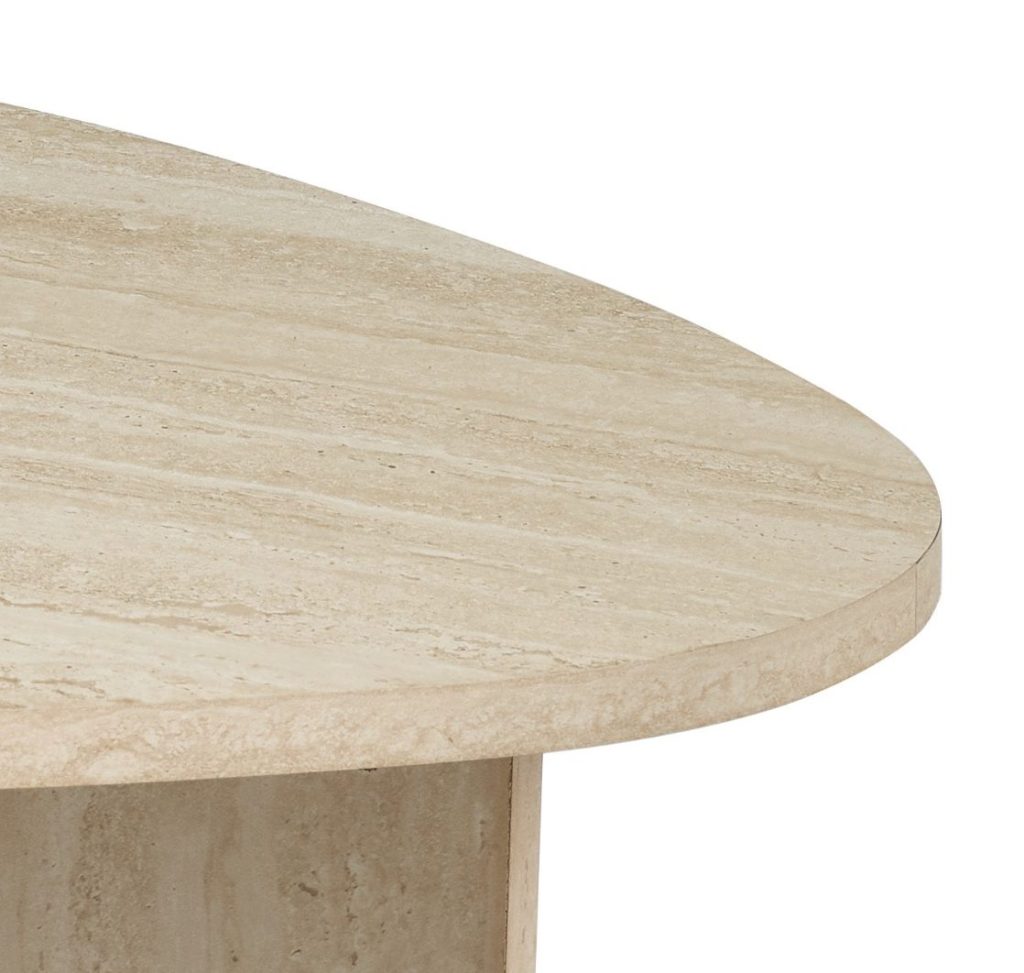 Finished in a travertine-effect veneer with warm honeyed tones, it brings natural elegance to modern or neutral interiors. To preserve its finish, avoid hot items, wipe spills promptly, and keep away from heat sources.